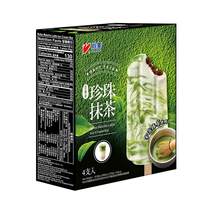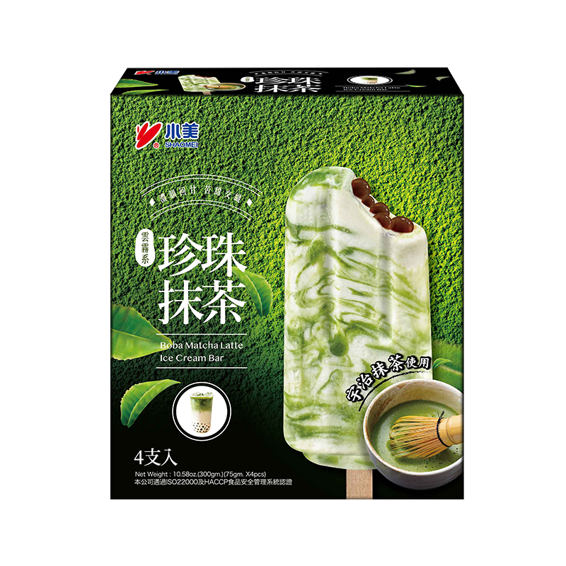 Creamy Milk Ice Cream with aromatic Japanese Matcha swirls and QQ brown sugar flavoured bobas!