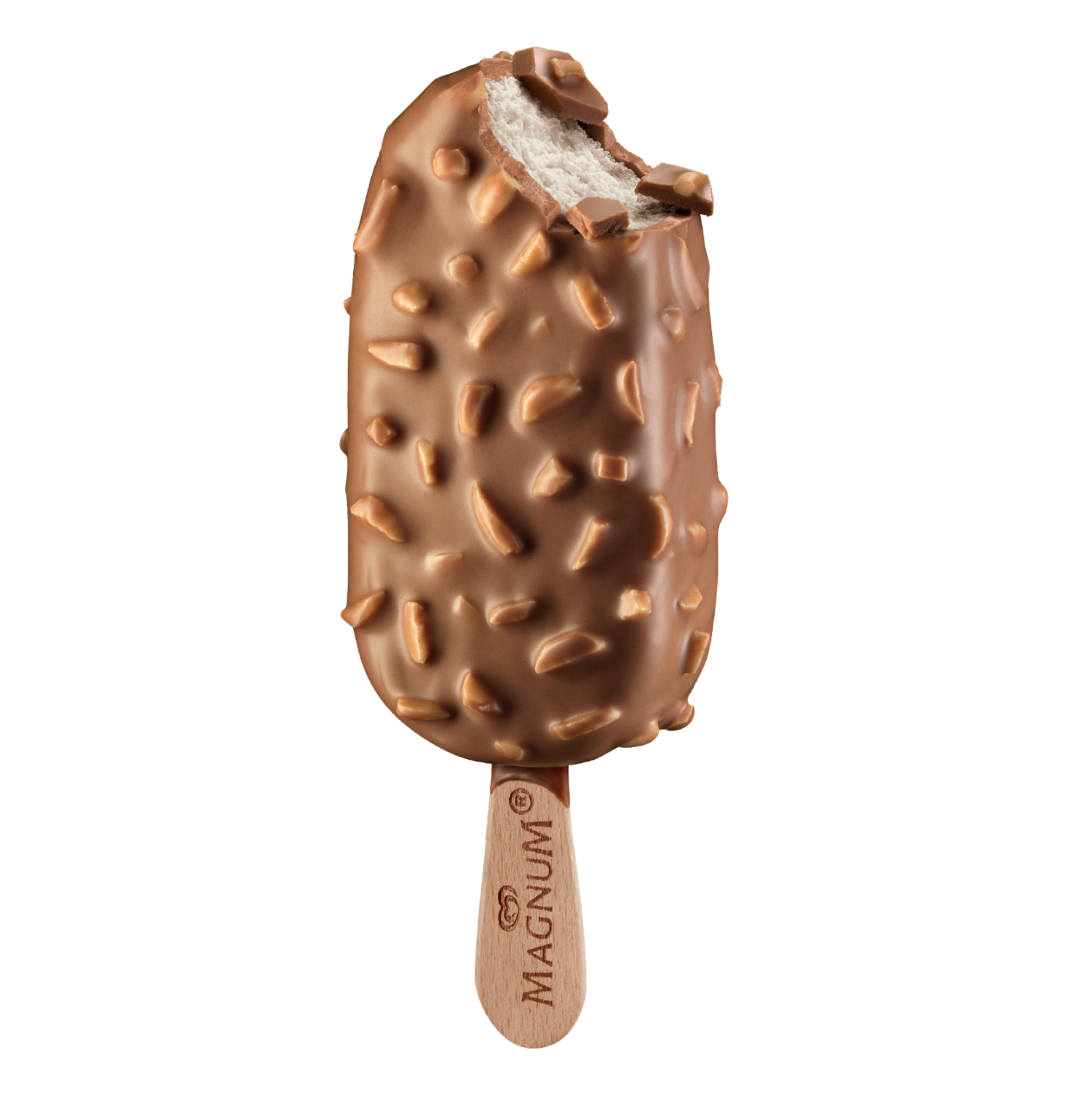 Velvety smooth vanilla ice cream covered in cracking Magnum milk chocolate and almond pieces.