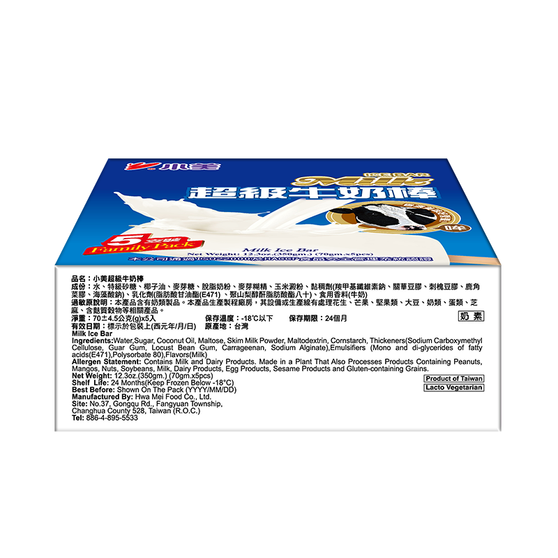 Ingredients: Water,Sugar, Coconut Oil, Maltose, Skim Milk Powder, Maltodextrin, Cornstarch, Thickeners(Sodium Carboxymethyl Cellulose, Guar Gum, Locust Bean Gum, Carrageenan, Sodium Alginate),Emulsifiers (Mono and di-glycerides of fatty acids(E471),Polysorbate 80),Flavors(Milk)